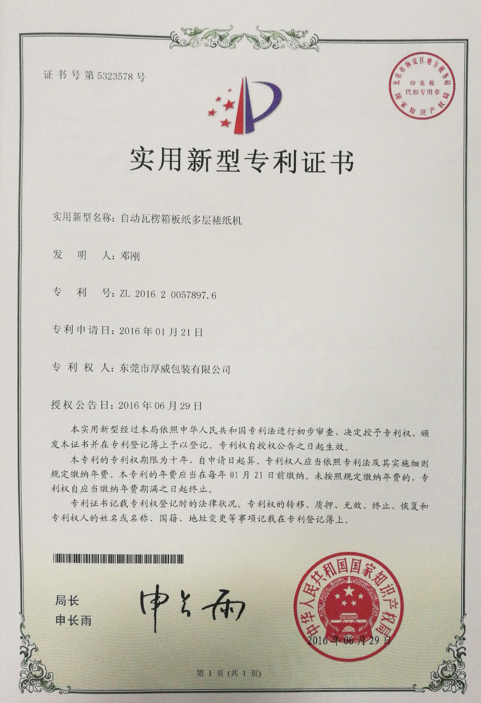 专利号ZL201620533716